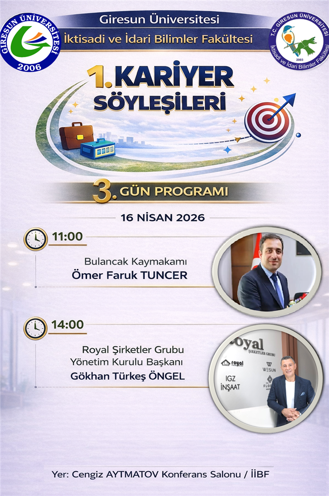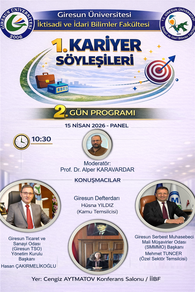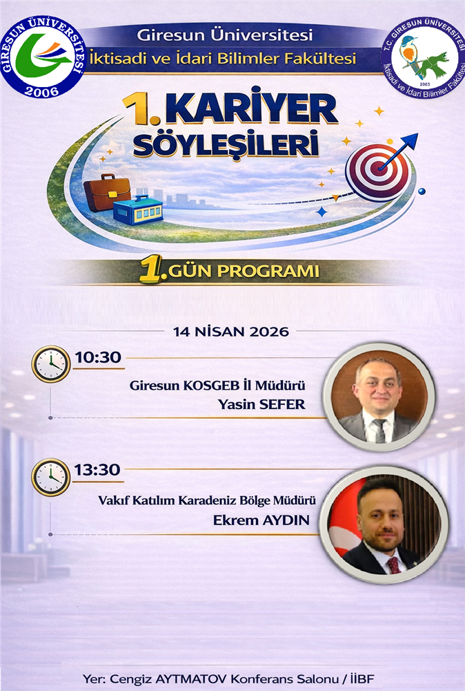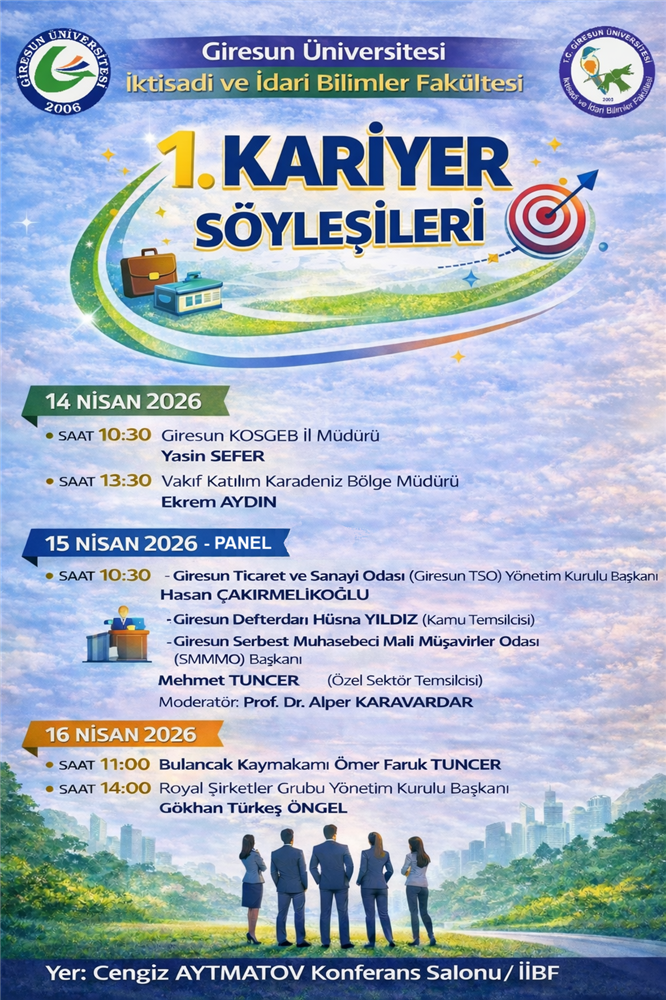 Giresun Üniversitesi İktisadi ve İdari Bilimler Fakültesi tarafından düzenlenen “1. Kariyer Söyleşileri” etkinliği, 14–16 Nisan 2026 tarihleri arasında gerçekleştirilecektir.